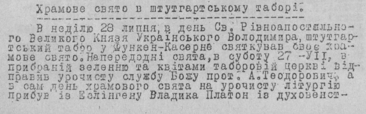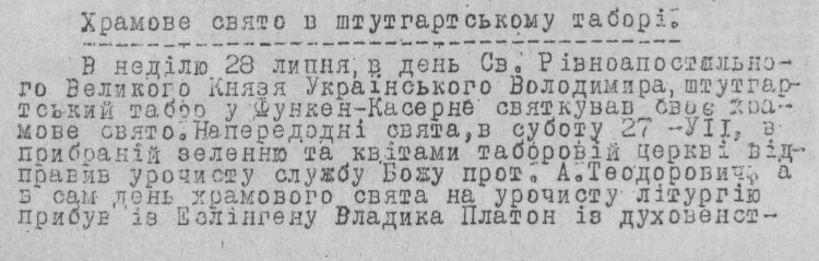 Центр УАПЦ землі Баден-Вюртемберг знаходився неподалік від Штутгарту, у місті Есслінген. Там перебував тодішній єпископ Платон.